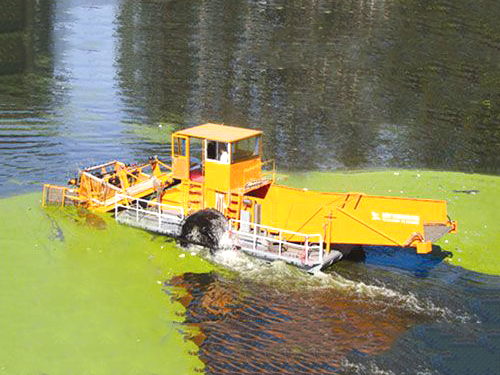 概述:该设备是在船的前部增加一台回转式清污机,将河道或水库中水面上的漂浮物随船的移动捞取到船舱中,船的尾部设置一台皮带输送机,待清污船靠岸后一次性将船舱中的污物输送到岸上。