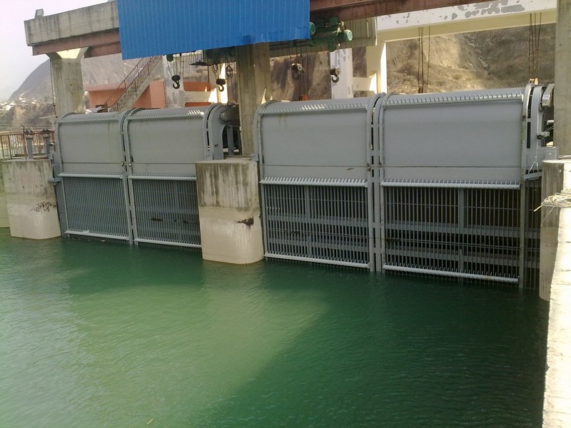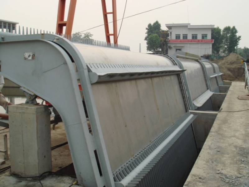 回转式清污机是将拦污和清污结合为一体的固定式连续自动清污设备。其主要应用于泵站、水电站、倒虹吸等水工建筑的进水口处,它以拦污栅拦截水流中所携带的污物(树木枝干、竹子、杂草、生活垃圾等),并通过回转的齿耙将其捞到桥面上,用皮带输送机或其他方式运走,避免污物进入引水道内,保证机组或其他设备能够顺利运行。该回转式清污机结构简单,整机刚性好、运行平稳、操作简便、清污效果好、效率高、耗能低、寿命长,便于维护保养。